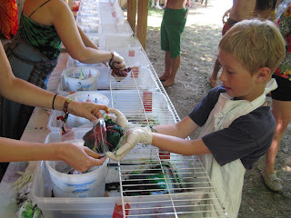 There were artsy things for kids to do - Karl made a bracer out of an inner tube and tied a shirt which we had to wait until we got home to wash it to see it in all its glory.